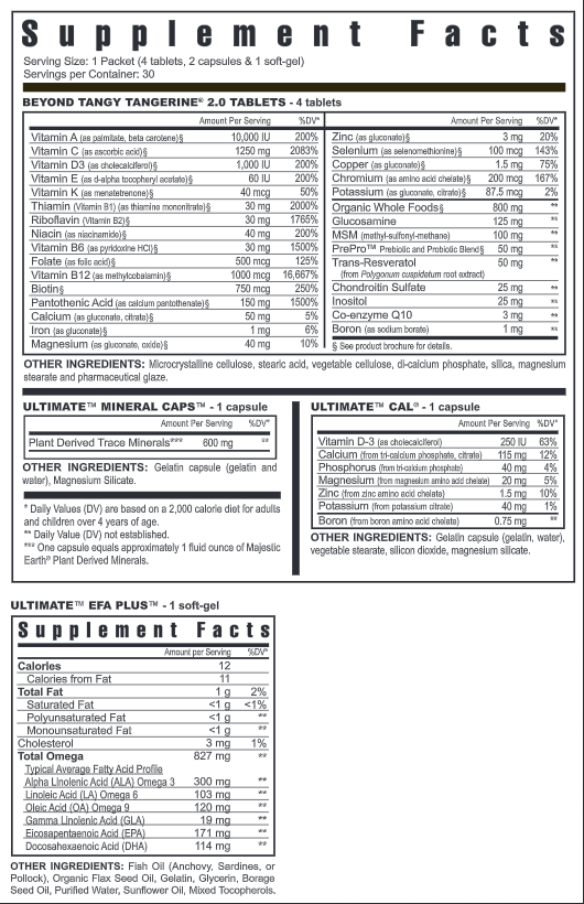 Take your 90 essential nutrients wherever you go with the On-The-Go Healthy Body Start Pak™ 2.0. This Pak includes vitamins, minerals, amino acids, essential fatty acids required for optimal health. The On-The-Go Healthy Body Start Pak™ 2.0 contains 30 packets, each includes: BTT 2.0 (4 tablets), Ultimate Mineral Caps™ (1 capsule), Ultimate CAL® (1 capsule) and Ultimate EFA Plus™ (1 soft-gel).